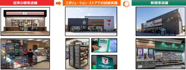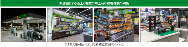 現在、海外コンビニにおいて、米国含む北米地域は2023年末時点で1万3229店舖、売上高約4兆2560億円の規模。リワードプログラム会員数 は9700万人となっている。新フォーマット店舗は「新標準店舗」と呼ばれている。米国セブン-イレブンでは、従来型の限られた食品・飲料の小型店舗から、フレッシュフードを強調し、店舗デザインを刷新した「エボリューション・ストア」と名付けた店舗で実験を進めていた。実験を経て、「新標準店舗」へと発展させた。売場の大型化、ファストフード重視に対応した設備、広い敷地にガソリンスタンドを併設した店舗となっている。