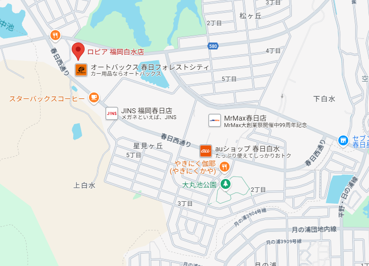 立地するのは「春日フォレストシティ」。43ヘクタールの広大な敷地に、公園や植栽を配した住宅エリア、ショッピングモールや大型専門店の商業エリアで構成される。ユニクロ、ミスターマックス、ホームプラザナフコ、ケーズデンキなどが出店している。福岡・博多から 10km 圏内と通勤、通学にも便利な、ベッドタウンとして発展している。