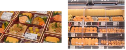 惣菜コーナーでは、店内で握った手づくりおにぎりや、バラエティ豊かな弁当を揃える。揚物、てんぷらなどはバラ販売を実施する。