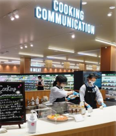 「クッキング・コミュニケーション」コーナーでは、店内で販売する旬の食材を使った料理の実演とメニュー提案を行う。商品選択に役立つ情報など、食に関する専門的な情報を買物中のお客に案内する。