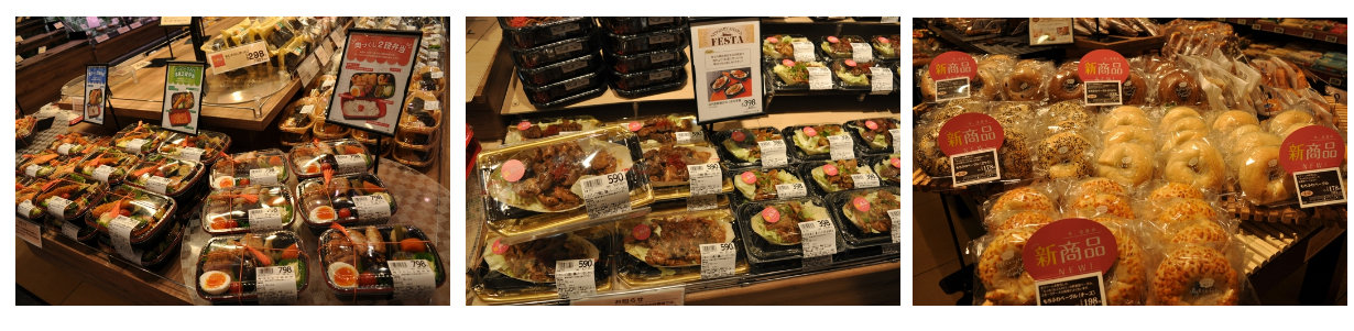 惣菜売場では、周辺のオフィスに勤める方向けにランチや仕事帰りの夕食ニーズに応えるため弁当は圧巻の60種類を揃える。新商品として「肉づくし」「魚介づくし」の2段弁当や、「店内鉄板焼き!出来立て鉄板おつまみ」各種、店内ベーカリー「小麦の郷」では”もちもち&ふんわり”の手作りベーグルやオリジナルパティを挟んだこだわりのハンバーガーなども発売する。