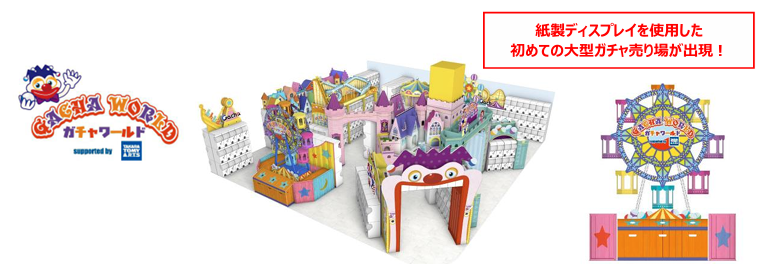 また紙製ディスプレイを使用した初の大型カプセルトイ(ガチャ)売場「ガチャワールド」も新たに導入する。400種類以上のガチャを取り揃えて、大人も子どもも楽しめる新しいい形のガチャ体験を提供する。