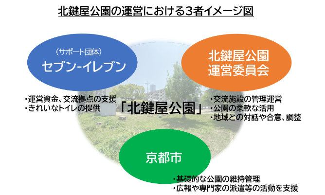 セブン‐イレブンは京都市・地域と連携し、北鍵屋公園の利用者減少や施設の老朽化など公園の課題解決を目指し、約1年半共同研究を行ってきた。