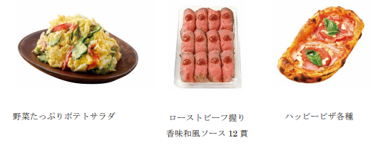 惣菜では、インストア加工の弁当を種類豊富に用意する。人気の「かつ重」はピーク時間に合わせて出来立てを品揃えする。またインストア冷惣菜は“CREATIVE y’s DELI”を強化し、店内手づくりの「野菜たっぷりポテトサラダ」や、「自社製ローストビーフ」を使った生春巻き等を品揃えする。寿司は、自社製ローストビーフを使った「ローストビーフ丼」や「ローストビーフ握り」を展開する。インストアベーカリーは、手伸ばし生地を使用したこだわりピザを、時間帯ごとに焼きたてで提供する。
