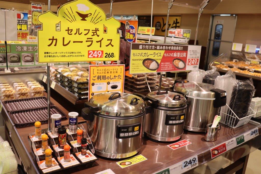 またリニューアルのポイントとして、惣菜コーナーではベイシア名物の「セルフ式カレーライス」が復活するのに加え、「セルフ式麻婆豆腐」も栃木県で初導入する。どちらも蓋が閉まれば盛り放題で、併設されたスパイスを使えば、辛さの調整ができる。