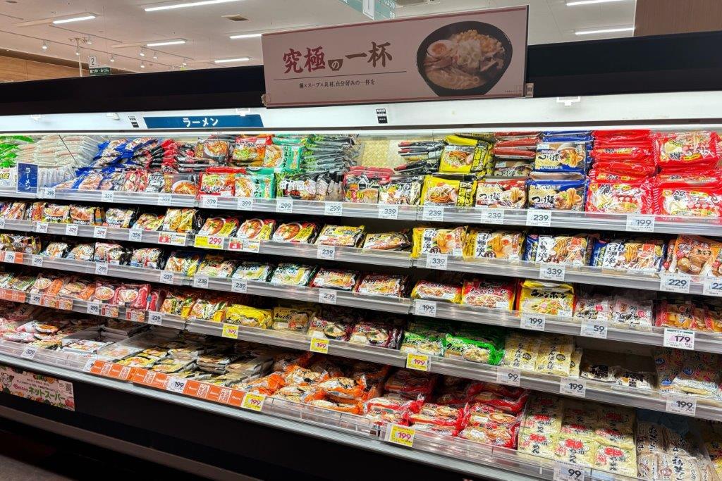 日配品コーナーでは、栃木県産米の「いな穂ちゃん」や「佐野ラーメン」など、県内各地の名産を取り揃える。