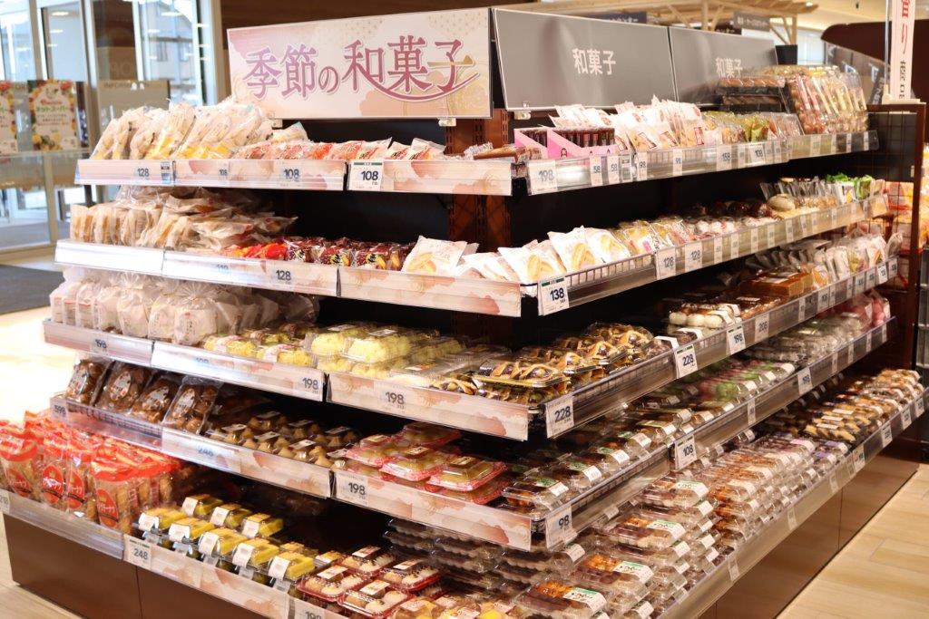 また和菓子では季節商品をコーナー化し、商品を選びやすい売場にする。