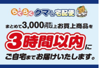 同サービスはまとめて3000円(税抜 以下同)以上の購入で、3時間以内に自宅まで届ける。折りたたみコンテナ5個分まで配送可能。アイスクリーム、氷以外の冷蔵品、冷凍品の配送も行う。1件当たり円200円。1回当たりの利用で発行店のみ有効のスタンプカードにスタンプを1個押印し、スタンプ10個ごとに配送料が1回無料となる。
