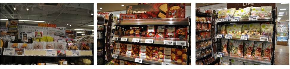 食品売場では、地元・枚方市の老舗和菓子店「大黒屋」の和菓子やスコットランド発のお菓子メーカー「Walkers」の商品、野菜のうま味を活かしたヘルシースナックを展開する「ASHITAMO」など各種商品を取りそろえて展開する。