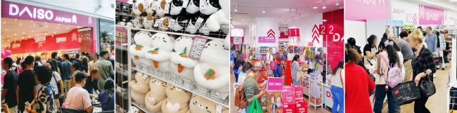 大創産業は海外25の国と地域に約1000店舗を出店している。2023年12月時点で、アメリカには121店舗。マレーシアには68店舗を展開している。3店舗の概要は以下の通り。