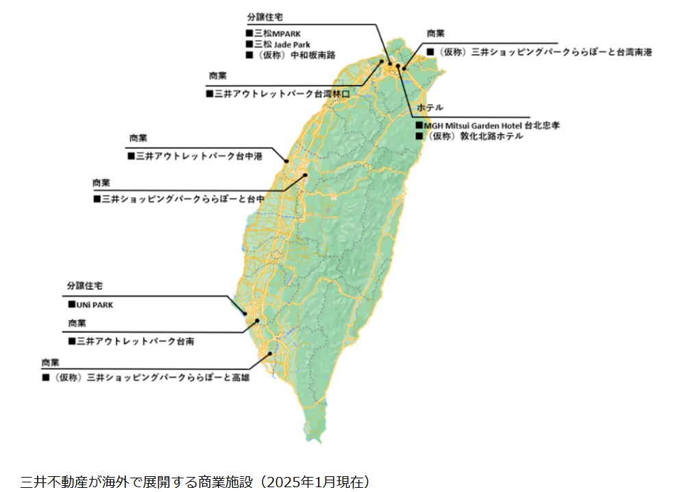 三井不動産は、これまでに台湾3大都市圏(台北都市圏、台中都市圏、南部都市圏)で商業施設事業を展開。ららぽーと台北南港は2023年に開業した「三井ショッピングパーク ららぽーと台中」に続く、台湾2施設目のららぽーとで、台湾では「三井アウトレットパーク」と合わせて5施設目の商業施設になる。