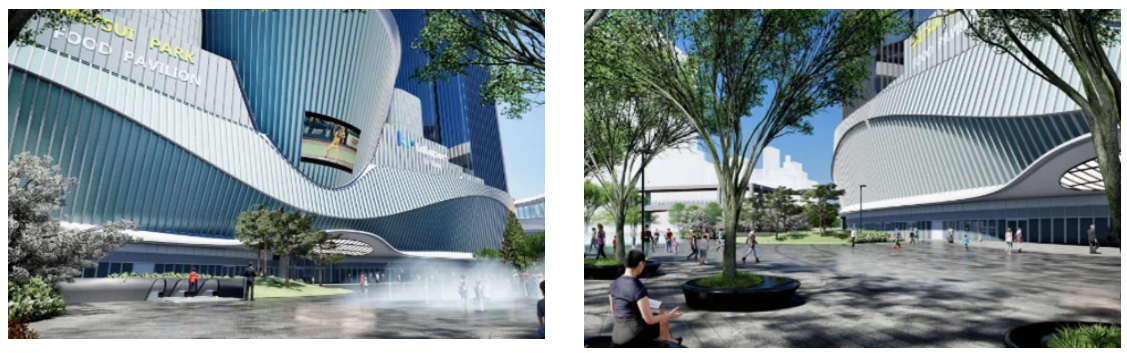 施設は吹抜け空間や、エンターテインメントなどのイベント開催が可能な広場を設置し、リアルならではの体験価値を提供して、エリアの賑わいを創出していく。