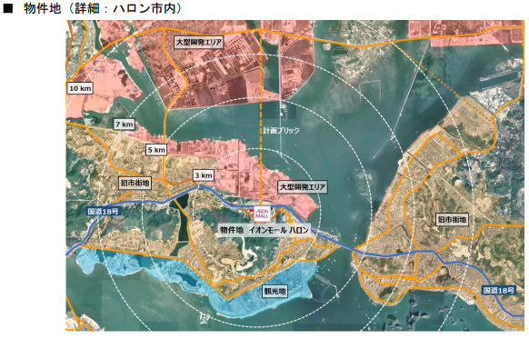 モールの開発計画地は、市内の幹線道路である国道18号に面し、市内および広域からのアクセスにも優れていて、また、観光スポットのある街の中心部から車で約10分の場所に位置するなど、観光客にとっても立ち寄りやすい立地にある。
