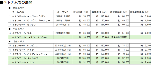 イオンモールは、これまでのハノイ市やホーチミン市など大都市周辺での出店に加え、今後は、人口増加および経済成長性が見込まれる有望な地方中核都市への出店を強化するとともに、地域のまちづくりや経済発展への寄与を目指す。