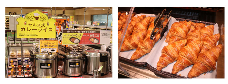 惣菜コーナーでは、ベイシア名物の「セルフ式カレーライス」が復活する。また「セルフ式麻婆豆腐」も初導入し、どちらも蓋が閉まれば盛り放題で、併設されたスパイスを使えば、辛さの調整ができる。