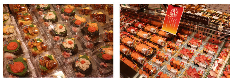 鮮魚コーナーでは、生寿司や魚惣菜などの即食メニューを強化。生寿司や「のっけご飯」シリーズなど、多様なラインナップで提供する。