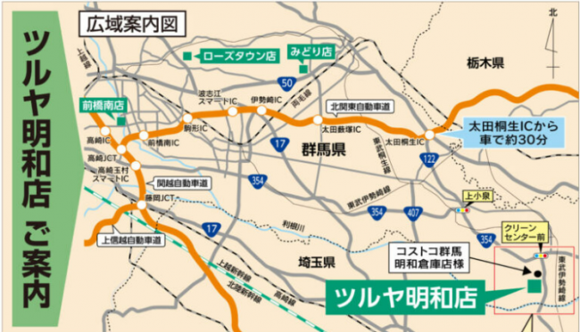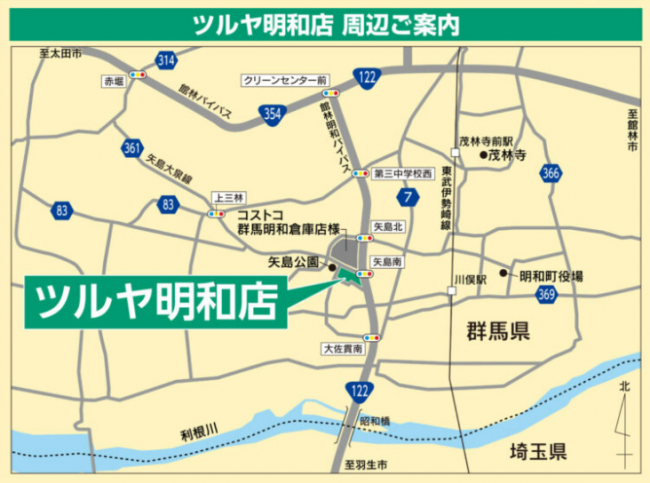 流通スーパーニュース > 店舗 > ツルヤnews|群馬県明和町のコストコ隣りに「ツルヤ明和店」年内オープン ツルヤnews|群馬県明和町のコストコ隣りに「ツルヤ明和店」年内オープン 店舗 / 2025年02月20日 ツイート (株)ツルヤ(長野県小諸市、掛川健三社長)は群馬県明和町に「ツルヤ明和店」を2025年内にオープンする。群馬県では6店舗目となる。 同店は埼玉県の県境まで約2kmほどの群馬県南部に立地する。隣りには「コストコホールセール 群馬明和倉庫店」がある。 ■ツルヤ明和店 所在地/群馬県邑楽郡明和町矢島857-1 オープン/2025年内 ツイート
