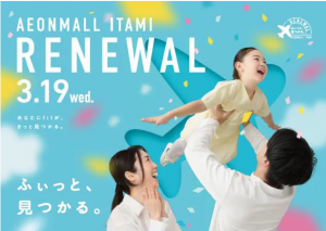 イオンモール(株)(千葉市美浜区、岩村康次社長)は、兵庫県伊丹市で運営するショッピングモール「イオンモール伊丹」を3月19日(水)から順次、リニューアルオープンする。