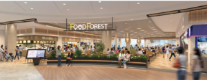 フードコートは「FOOD FOREST(フードフォレスト)」に名称変更し、植栽を加えたベンチ・カウンター・間仕切りを新設するほか、テラス席には人工芝を敷く。座席数も約900席に増席する。