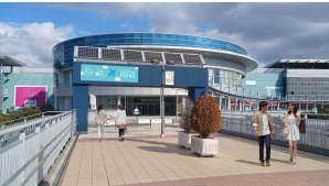 年間約250万人が通行するJR「伊丹駅」とのペデストリアンデッキゲート上にサイネージ(縦1m×横4m)を新設し、プロモーションや イベント、専門店情報などを発信する。