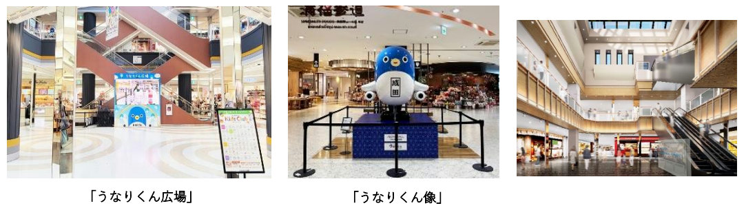 成田市の観光キャラクター「うなりくん」をテーマにした「うなりくん広場」を全面リニューアルする。高さ2mからなる「うなりくん像」を制作し、新たにうなりくんのイラストでラッピングした、約200インチからなる大型サイネージを設置する。そのほか、メインコートの「和み広場」が、「和」をイメージした明るく温かみのある空間へと生まれ変わる。