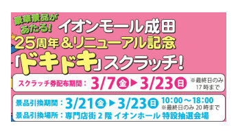 イオンモール(株)(千葉市美浜区、岩村康次社長)は、千葉県成田市で運営するショッピングモール「イオンモール成田」を、3月7日(金)から順次リニューアルオープンする。