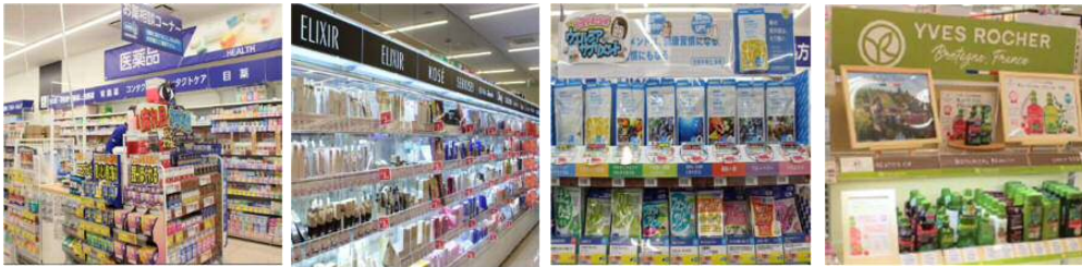 「ウエルシアプラス小倉桜橋店」では、医薬品売場は登録販売者を、化粧品売場は専門スタッフを配置し、対面接客しながら美と健康をサポートする。店舗内には相談カウンターを設置する。また日用雑貨売場では、ヘアケア、オーラルケアをはじめ、ベビー用品、介護用品、ペット用品も品揃えし、生活必需品がワンストップで揃う利便性を提供する。