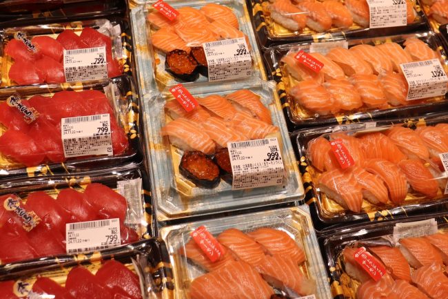 鮮魚コーナーでは、各市場から産直で仕入れた丸魚や切り身などの新鮮な生魚や、厳選素材を活用した生寿司や魚惣菜を強化し、素材と惣菜の両軸で提案する。精肉コーナーでは、牛肉の需要が高い地域性であることから、ベイシアオリジナルブランド牛の「とろ牛」などを中心に、国産肉を強化する。