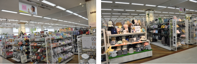 雑貨では、人気ブランドのポーチ・バッグ・帽子や、キャラクター雑貨など、トレンドに合わせた日常使いしやすいアイテムを揃える。
