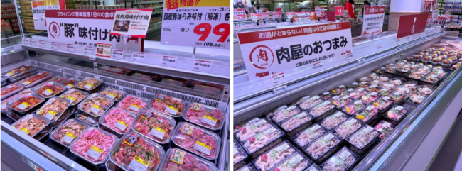 精肉部門では、味付け焼肉など簡便商品の品揃えを充実させる。すぐに食べられる商品を精肉コーナーでも新規導入する。