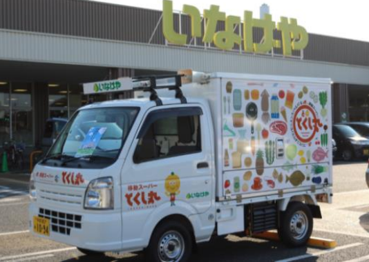 いなげやは移動スーパー事業を展開する(株)とくし丸とフランチャイズ契約を締結し、2017年10月に東京都小平市内店舗を拠点とした「1号車」の運行をスタートした。全体では30台目、神奈川県内では10台目となる。