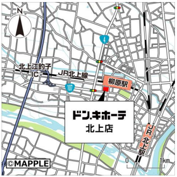 「ドン・キホーテ北上店」は2024年4月14日に閉店した「ジョイス北上中央店」の跡地へ出店する。JR北上線の「柳原駅」から徒歩約10分、車では東北自動車道の「北上江釣子インター」から約5分の距離に位置する。