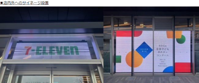 店頭サイネージでは、「2024年度SDGs全国子どもポスターコンクール」でセブン‐イレブン賞を受賞した小中学生の作品を表示。ポスターを通じて、SDGs目標の達成を呼びかける作品を呼びかける。また、カウンター上のサイネージでは、カウンター商品のメニューボードを表示し、おすすめの商品の画像を配信する。