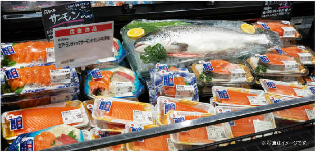 鮮魚では、水産資源や環境に配慮して育てられた「サステナブルシーフード」を展開する。富士山のふもとで陸上養殖された日本初の国産アトランティックサーモンを販売する。