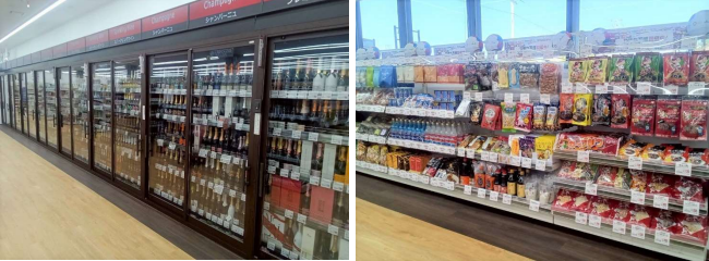 売場面積194坪の店内では、贈り物やゴールデンウィークの手土産にも使える地酒や地ワインをはじめ、母の日の贈り物にも好適なワインや洋酒等も幅広く展開する。アウトドアや行楽に最適な大容量ボトルやパーティーサイズのドリンクや食品を多数取り揃える。