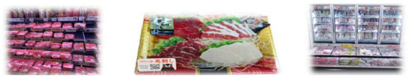 肉売場は、無駄な脂肪分が少なく、まろやかな赤身がとても美味しい「あか牛」や、さっぱりとした脂の旨みとほのかな甘みがある生産量日本一の熊本県の「馬刺し」を品揃える。