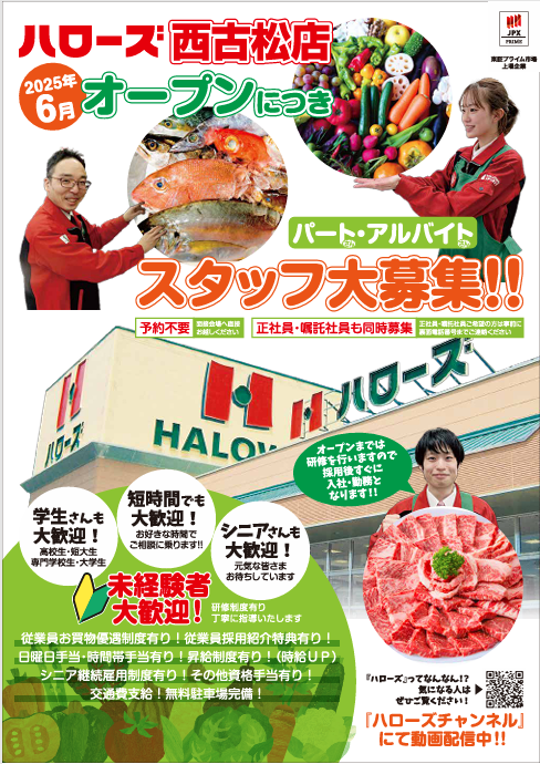 流通スーパーニュース > 店舗 > ハローズnews|今夏「ハローズ西古松店」「ハローズ宇部店」新規開設 ハローズnews|今夏「ハローズ西古松店」「ハローズ宇部店」新規開設 店舗 / 2025年05月16日 ツイート (株)ハローズ(広島県福山市、佐藤利行社長)は、6月末に岡山市北区に「ハローズ西古松店」を、また今夏、山口県宇部市に「ハローズ宇部店」をオープンする。 両店ともにスタッフの募集を開始した。 ■ハローズ西古松店 所在地/岡山県岡山市北区西古松西町6-101ほか 店舗面積/6082㎡(1840坪) 駐車台数/256台 駐輪場台数/300台 ■ハローズ宇部店 所在地/山口県宇部市大字妻崎開作859(仮) ツイート
