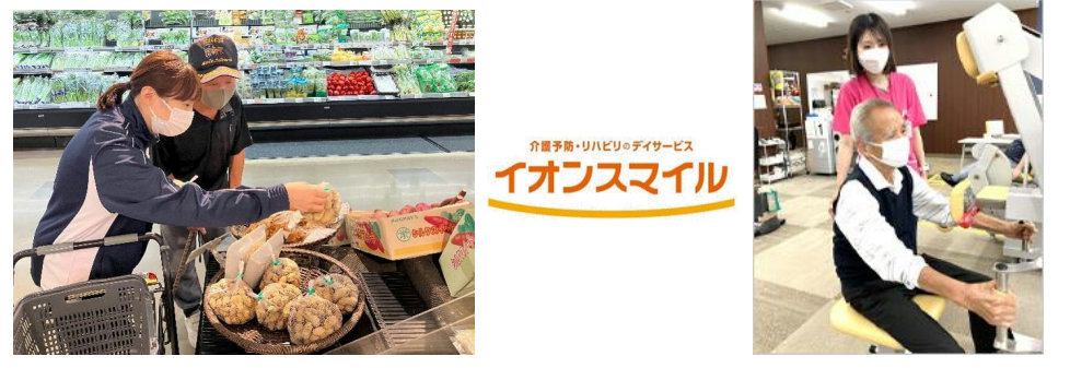 「イオンスマイル」では、利用者自ら店内を回り商品を選ぶ「買物」をリハビリの一環とする「買物リハビリ」や、商業施設内でデイサービス利用者と一般の方の交流につながる「健康イベント」など、イオンリテールならではのサービスを展開することで、地域の課題解決に貢献していく。