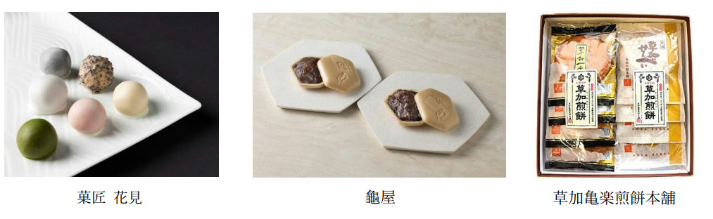 「菓匠 花見」「龜屋」「草加亀楽煎餅本舗」など、地元埼玉で愛される名店の味を取り扱う。