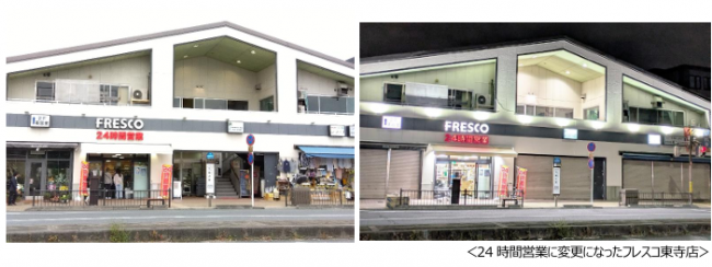 営業時間を 24 時間に変更することで、顧客の利便性を高めるとともに、京都市および地域の「食のインフラ」拡充に貢献する。東寺店を含めての24時間営業店は44店(うち京都市内38店舗)となった。