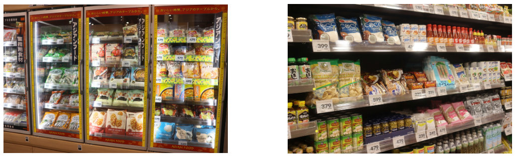 フローズンコーナーはリニューアルを機に、品揃えを1.5倍以上に拡大。即食・簡便系商品や冷凍野菜の品揃えを増やしたほか、大泉町は外国籍人も多く居住していることから、ブラジル商品を集めたコーナーを展開する。