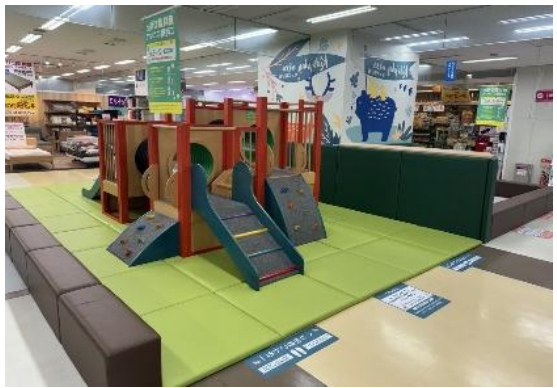 無料子ども遊び場には、靴を脱いで遊ぶことのできるスペースを設ける。新しく遊具も導入する。