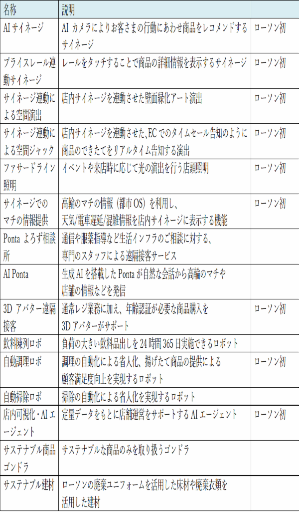 店舗では、ローソン店舗や高輪のマチがもつ多様なデータを、KDDIのもつ通信やテクノロジーの「つなぐチカラ」で連携・循環させ、顧客に新しい体験を提供する。一人ひとりに合わせたお奨め商品を案内するなど、店舗内のサイネージを通じた顧客とのコミュニケーションを図る。また演出を楽しみながら買物ができる空間づくりや、店内での買物以外にも暮らしに関わるさまざまなサービスの相談が可能なリモート接客など、リアルな店舗にデジタル技術を融合することで、より温かみのある買物体験の提供を目指していく。