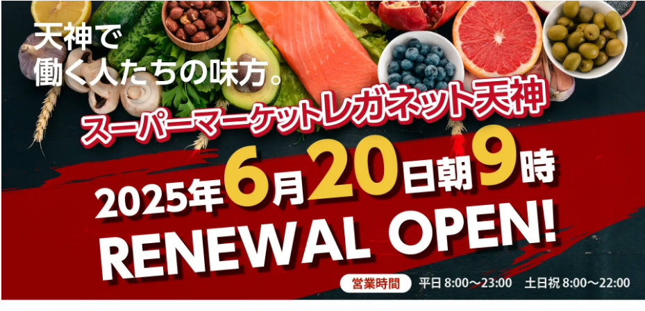 (株)西鉄ストア(福岡県筑紫野市、久保田等社長)は6⽉20⽇(⾦)、福岡市中央区天神の「ソラリアステージ」地下1階の「レガネット天神」をリニューアルオープンする。