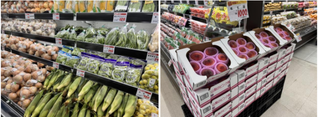 青果部門では、旬の野菜を豊富に品揃えする。また箱売りでより一層お買い得価格で提供する。