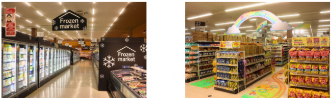 冷凍食品コーナーでは、即食系のワンプレート商品の品揃えを強化したほか、便利な冷凍野菜を多く取り揃える。菓子コーナーでは子育てファミリー世帯が多いことを踏まえ、「おかしのくに」と題し、駄菓子やグミなどを集合展開する。