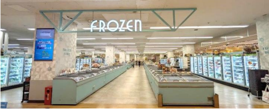 冷凍食品、農産・水産売場を拡大した。冷凍食品は1000アイテムへと品揃えを拡大した。対面鮮魚コーナーは2倍に拡大し、旬の丸魚、鮮魚、切身を揃えた。