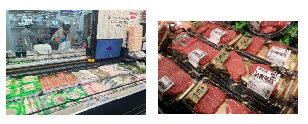 水産売場では、伊吹島漁港から直送される新鮮な活魚をはじめ、地場鮮魚を多数品揃えする。また対面販売も実施し、下処理から三枚おろしまで対応する。畜産売場では、香川のブランド牛「オリーブ牛」を中心に、使い切りにちょうどいい少量サイズから大容量のジャンボサイズまで幅広く取り揃える。