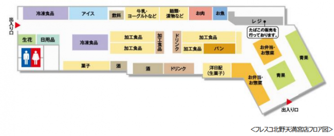 フレスコ北野天満宮店は、2024年11月に閉店した「セブンイレブン北野天満宮前店」へ居抜き出店となる。コンビニ跡地のため、他のフレスコ・コレモと比べて店舗面積は小さいが、同店は最適化された店舗運営を目指す。