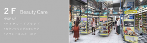 2階はトレンドメイクフロア。トレンドの韓国コスメからハイグレードブランドまで多くのブランドを取り揃える。POP UPで最新コスメを演出する。